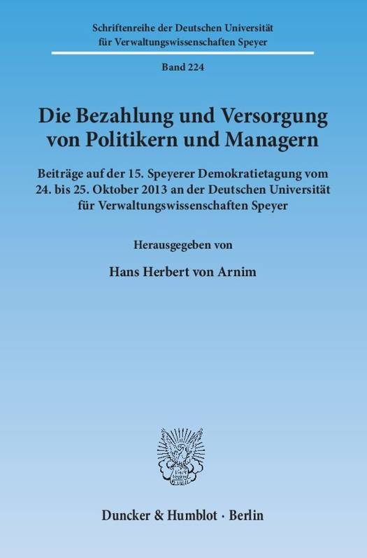 Die Bezahlung von Führungskräften ist schon immer ein sensibler Bereich, weil sie an Grundfragen des Verständnisses von Demokratie und Marktwirtschaft rührt. Derzeit ist das Thema besonders aktuell: Der Bundestag machte den Bericht der "Unabhängigen Kommission zu Fragen des Abgeordnetenrechts " zur Vorlage seiner jüngsten Diätengesetzgebung. Darin wird die Entschädigung von Bundestagsabgeordneten nicht nur deutlich erhöht, sondern auch dynamisiert. Der bayerische Diätenskandal, gemeinhin bekannt als Verwandtenaffäre, obwohl er sich mitnichten in der Beschäftigung von Ehegatten und Kindern auf Staatskosten erschöpft, führte zu Änderungen des bayerischen Abgeordnetengesetzes; die CSU veröffentlichte sogar einen "Verhaltenskodex" für Politiker aus ihren Reihen. Die Thematik des Bandes geht aber weit über Abgeordnetendiäten hinaus. Sie betrifft auch Nebeneinnahmen von Politikern, den finanziellen Status von Regierungsmitgliedern und kommunalen Wahlbeamten sowie die Bezahlung von Managern.