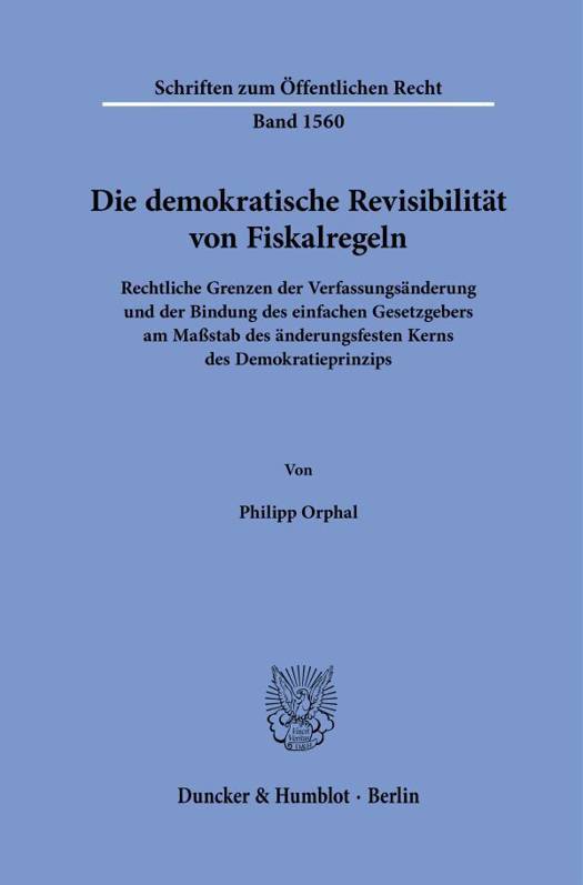 English summary: The Democratic Revisibility of Fiscal Rules. Legal Limits of Amending the Constitution and of Binding the Legislating Bodies Deriving from the Core Democratic Principle as Declared Unalterable by the German Constitution The author develops a legal theory of the democratic principle of revisability. According to this principle, binding future democratic majorities is permissible under Art. 79 para. 3 in conjunction with Art. 20 para. 1 GG only if it stabilizes the legal and social order and is open to changes in values or knowledge. Although the German debt brake pursues stabilization purposes (sustainability, monetary stability, financial stability, stability of interest rates), it does not meet this standard. German description: Kern der Untersuchung ist die dogmatische Erarbeitung des demokratischen Grundsatzes der Revisibilitat am Massstab des einfachen Demokratieprinzips (Art. 20 GG) und des besonders geschutzten Kerns des Demokratieprinzips (Art. 79 Abs. 3 GG). Als Referenzgebiet dienen Fiskalregeln, da diese auf nahezu allen Ebenen der Normenhierarchie verankert sind. Zunachst werden die Regeln des Stabiliats- und Wachstumspakts, der Schuldenbremse und des SKS-Vertrags erortert. Sodann werden unter Heranziehung wirtschafts- und politikwissenschaftlicher Erkenntnisse ihre Funktionen in der bestehenden Wirtschafts- und Finanzordnung besprochen. Hiernach wird eine Dogmatik der demokratischen Revisibilitatsgrundsatze herausgearbeitet, an deren Massstab konkrete Regeln (hier: Fiskalregeln) auf ihre Verfassungsmassigkeit gepruft werden konnen. Darauf folgend wird dieser Massstab auf die vorgestellten Fiskalregeln angewendet. Abschliessend werden die Thesen der Arbeit und die zugrunde gelegten Ausgangspunkte dargestellt.