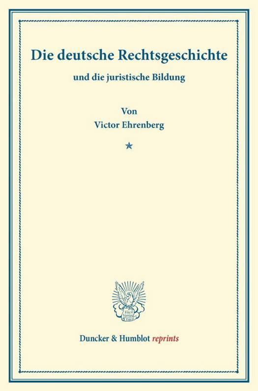Diese kleine Schrift beinhaltet in der Hauptsache einen Vortrag, den der Jurist Victor Ehrenberg (1851-1929) am 24. Januar 1894 in der Juristischen Gesellschaft zu Wien gehalten hat. Das Buch bietet eine »knappe, leichtverständliche, mehr den Ideengehalt als das Stoffliche hervorhebende Darstellung der deutschen Rechtsgeschichte«.