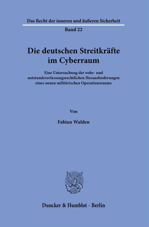 Die Bundesrepublik Deutschland ist im Cyberraum verwundbar geworden. Gleichzeitig erschliessen die deutschen Streitkrafte den Cyberraum militarisch. Die Untersuchung geht der Frage nach, ob Wehr- und Notstandsverfassung dieser Entwicklung gewachsen sind. Da der Begriff der Waffe diese an unterschiedlichen Stellen pragt, wird zunachst gepruft, ob Cyberangriffe als Waffe qualifiziert werden konnen. Aufbauend hierauf wird untersucht, inwieweit Verwendungen der Streitkrafte im Cyberraum dem Verfassungs- und Parlamentsvorbehalt unterfallen sowie unter welchen Voraussetzungen und mit welchen Mitteln ein Streitkrafteeinsatz zur Verteidigung gegen Cyberangriffe zulassig ist. Abschliessend widmet sich die Untersuchung der Moglichkeit eines Cybernotstands. Dabei bleibt sie nicht auf eine Betrachtung der Einsatzmoglichkeiten der Streitkrafte in der bestehenden Notstandsverfassung beschrankt, sondern beleuchtet, ob diese insgesamt zur Abwehr der Gefahren des Cyberraums geeignet ist.