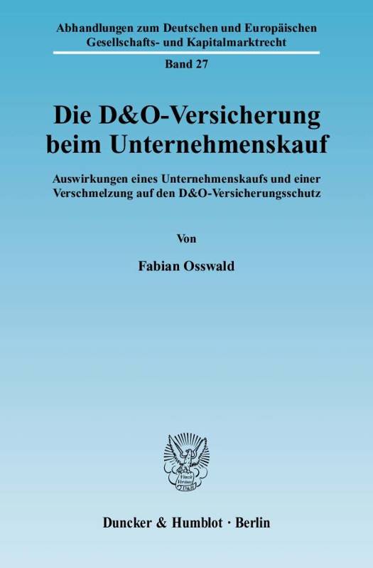 In den letzten Jahren hat die Haftung von Gesellschaftsorganen und damit einhergehend die diese Haftungsrisiken abdeckende D&O-Versicherung stetig an Bedeutung gewonnen. Mit zunehmender Verbreitung der D&O-Versicherung steigt auch die Wahrscheinlichkeit, dass an einem Unternehmenskauf oder einer Verschmelzung Manager beteiligt sind, die D&O-Versicherungsschutz genießen. Fabian Osswald befasst sich mit den Auswirkungen einer Unternehmenstransaktion auf den Versicherungsschutz. Er analysiert die Risiko- und Interessenlage für die Versicherer, die versicherten Manager und die beteiligten Unternehmen bei einer Unternehmenstransaktion im Hinblick auf die D&O-Versicherung. Da die Gesetzeslage die Interessen der Versicherer, Manager und Unternehmen nur ungenügend zu einem Ausgleich bringt, liegt ein Hauptaugenmerk der Arbeit auf einer praktikablen Ausgestaltung von Versicherungs-, Unternehmenskaufs-, Verschmelzungs-, Gesellschafts- und Anstellungsverträgen.