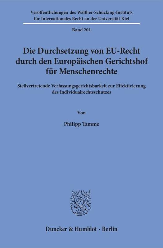 Individualrechte aus dem EU-Recht mussen gerade gegenuber den Mitgliedstaaten der EU wirksam durchsetzbar sein. Philipp Tamme untersucht, inwieweit der Europaische Gerichtshof fur Menschenrechte hierzu beitragen kann. Anhand der in Straaburg bislang entschiedenen Falle werden die Ursachen fur Rechtsschutzdefizite auf nationaler und europaischer Ebene analysiert sowie die formellen und materiellen Voraussetzungen fur eine erfolgreiche konventionsrechtliche Sanktionierung von Unionsrechtsverstoaen herausgearbeitet. Ausgehend von den allgemeinen Grundlagen wird im Einzelnen die Durchsetzung von Verfahrensrechten, Rechten aus EU-Richtlinien, Freizugigkeitsrechten und politischen Rechten behandelt. Hieran knupfen jeweils weitergehende Vorschlage an, die auf eine rechtsstaatsorientierte Optimierung des Individualrechtsschutzes im europaischen Mehrebenenverbund abzielen. Die Arbeit wurde als hervorragende Promotionsleistung mit dem Forderpreis des Kieler Doctores Iuris e.V. ausgezeichnet.