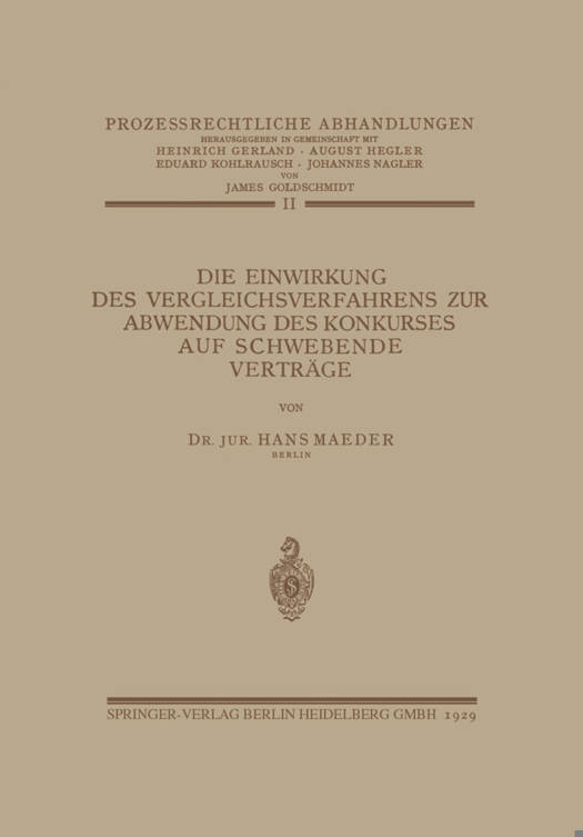 Die Einwirkung Des Vergleichsverfahrens Zur Abwendung Des Konkurses Auf Schwebende Verträge