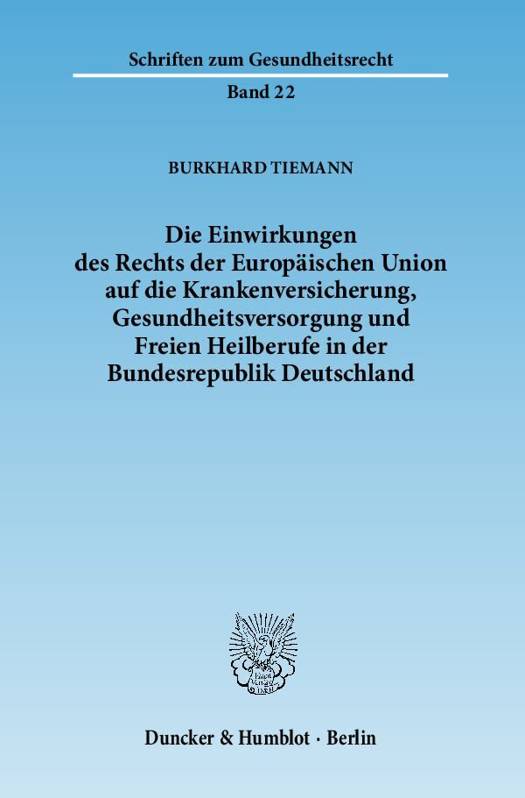 Die Einwirkungen Des Rechts Der Europaischen Union Auf Die Krankenversicherung, Gesundheitsversorgung Und Freien Heilberufe in Der Bundesrepublik Deutschland