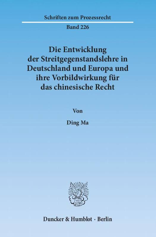 Der Begriff Streitgegenstand ist eine Schöpfung der deutschen Prozessualisten zu dem Problem, worüber in einem Prozess verhandelt und entschieden wird. Auch wenn es viele unterschiedliche Theorien zur Streitgegenstandslehre gibt, ist diese ohne Zweifel ein Eckpfeiler des Zivilprozessrechts des germanischen Rechtskreises. Die Arbeit fokussiert sich auf die historische Entwicklung und rechtliche Grundlage der Lösungen zum Anspruchskonkurrenz- sowie Streitgegenstandsproblem, wobei der Schwerpunkt in der Darstellung sowie Analyse der gegenwärtigen Entwicklung im deutschen Recht und dem rechtstraditionellen sowie -kulturellen Hintergrund der deutschen Streitgegenstandslehre liegt.Die Rechtsentwicklung der Volksrepublik China wird seit langem vom deutschen Recht beeinflusst. Die Streitgegenstandstheorien in Deutschland und Europa sind von großer Bedeutung für die weitere Entwicklung des chinesischen Zivilprozessrechtes. Daher widmet sich diese Arbeit der Wissenschaftsrezeption und dem Aufbau einer geeigneten Streitgegenstandslehre für das chinesische Recht. Unter Berücksichtigung der Besonderheiten des chinesischen Prozessrechtssystems kommt der Autor zu dem Ergebnis, dass die einheitliche Anwendung einer verbesserten zweigliedrigen prozessualen Streitgegenstandstheorie empfehlenswert ist.