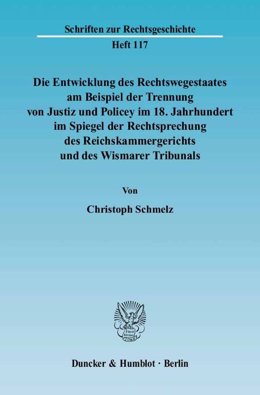 Die Entwicklung Des Rechtswegestaates Am Beispiel Der Trennung Von Justiz Und Policey Im 18. Jahrhundert Im Spiegel Der Rechtsprechung Des Reichskammergerichts Und Des Wismarer Tribunals