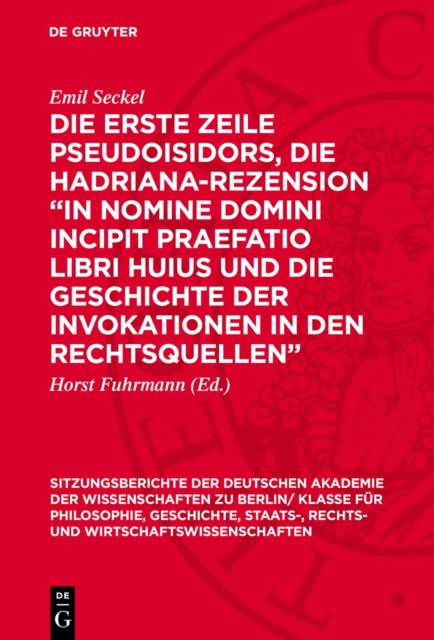 Die Erste Zeile Pseudoisidors, Die Hadriana-Rezension "In Nomine Domini Incipit Praefatio Libri Huius Und Die Geschichte Der Invokationen in Den Rechtsquellen"