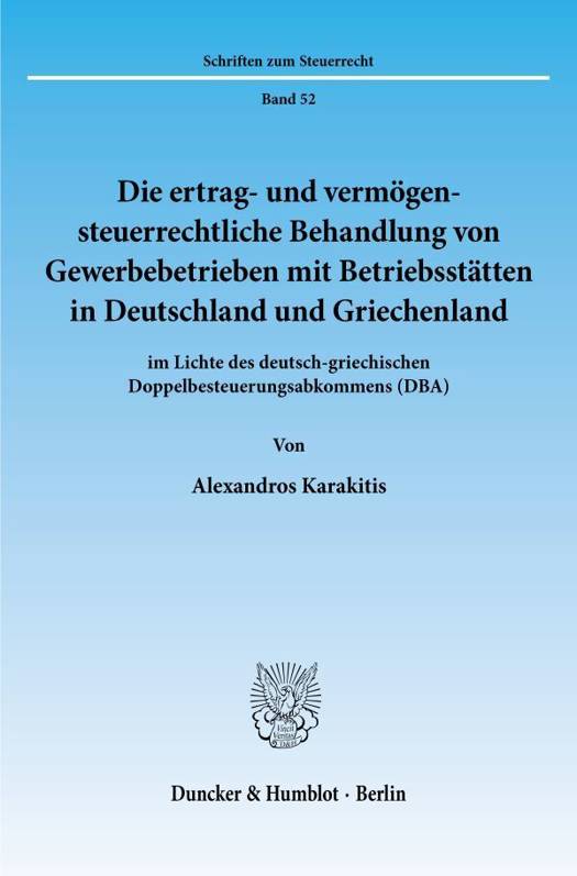 Gründen gewerbliche Unternehmen im Ausland eine Betriebsstätte, ergeben sich besondere steuerliche Folgen. Dies ist Gegenstand der vorliegenden Untersuchung. Der Verfasser erörtert die allgemeinen Regeln der internationalen Unternehmensbesteuerung und die einschlägigen steuerrechtlichen Regelungen von Griechenland und Deutschland. Er untersucht die beiden Steuerrechtsordnungen in Verbindung mit den Normen des zwischen diesen Staaten bestehenden Doppelbesteuerungsabkommens über die Besteuerungsbefugnisse des jeweiligen Betriebsstätten- und Wohnsitzstaates. Das enge Verhältnis zwischen EG-Recht und direkter Besteuerung wird verdeutlicht, indem anhand der EuGH-Rechtssprechung die Vereinbarkeit einzelner Regelungen des deutschen und des griechischen Steuerrechts mit den EG-Freiheiten - insbesondere mit der Niederlassungsfreiheit - und ihre Anwendbarkeit im EG-Raum geprüft wird.