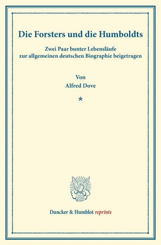 Im 1881 veröffentlichten Buch »Die Forsters und die Humboldts« stellt Historiker Alfred Dove die illustren Lebensläufe des Naturforschers Johann Reinhold Forster (1729-1798) und seines Sohnes Georg (1754-1794) denen der Gebrüder Humboldt Wilhelm (1767-1835) und Alexander (1769-1859) gegenüber.