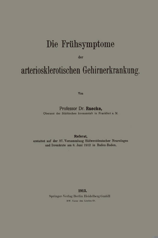 Die Frühsymptome Der Arteriosklerotischen Gehirnerkrankung