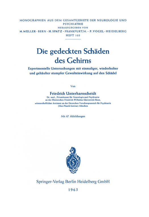 in kurzen Abständen hintereinander auf den Schädel eingewirkt. (Bei den nächt- lichen Anfällen kann eine Gewalteinwirkung auf den Schädel wegen der weichen Lagerung wohl ausgeschlossen werden.) Die am Gehirn nachgewiesenen patho- morphologischen Alterationen entsprechen deJ;len unserer Versuchstiere. Während im Tierversuch wiederholte Gewalteinwirkung mit Commotionsdosen in ein- bis zweitägigen Abständen ein anderes Ausbreitungsmuster der Schädigung besitzt als die mit gehäuft unmittelbar aufeinanderfolgender Subcommotionsdosis (vgl. S. 72 u. 79), liegt in dem besprochenen Fall eine Mischform beider Schädigungs- muster vor, sehr wahrscheinlich, weil bei den Stürzen sowohl Commotions- als auch Subcommotionsdosen in unterschiedlichen Zeitabständen wirksam wurden. Man wird daher diskutieren müssen, ob die am Gehirn gefundenen morphologi- schen Veränderungen sowohl Folge der zahlreichen generalisierten cerebralen An- fälle als auch der wiederholten stumpfen Gewalteinwirkung auf den Schädelinhalt waren. c. Zusammenfassung 1. Es wurde der Effekt einmaliger, wiederholter und gehäufter stumpfer Ge- walteinwirkung auf den Schädel an 59 Tieren (13 Kaninchen und 46 Katzen- untersucht. Die Einwirkung erfolgte mit der von FOLTZ, JENKNER u. WARD an- gegebenen "concussion gun" mit Geschwindigkeiten von 7,1 bis 18,3 m/sec (ent- sprechend 22,0 bis 66,0 km/Std). Da die Masse des auf den Schädel treffenden Bolzens bekannt war, ließen sich die Beschleunigungen, die dem Schädel erteilt wurden, errechnen; sie wurden außerdem an Katzen und Kaninchen experimen- tell ermittelt. Für gewöhnlich erfolgte die Gewalteinwirkung aus Schlagrichtung 5 (von oben). Nur bei fünf Katzen wurde Schlagrichtung 1 (von hinten) gewählt. Der Schädel war stets frei beweglich (Beschleunigungstrauma).