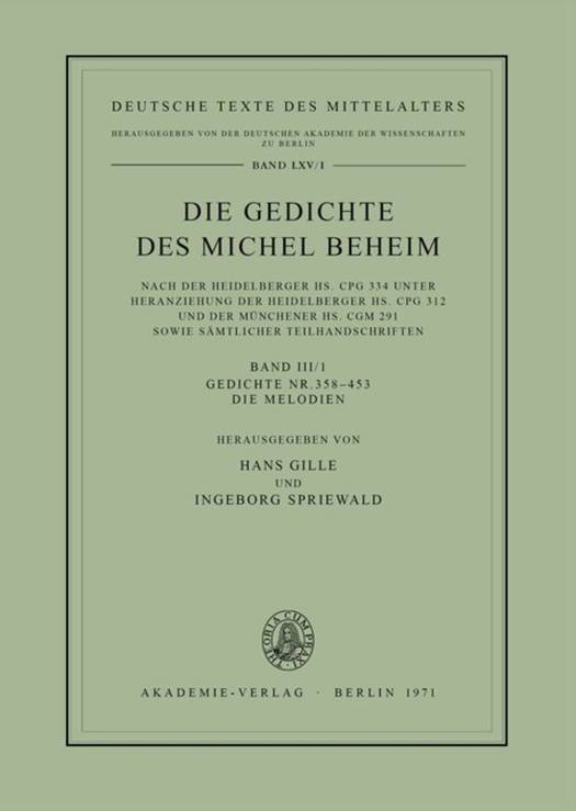 6. Die Gedichte des Michel Beheim, Band III/1, Gedichte Nr. 358-453. Die Melodien