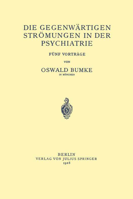 Die Gegenwärtigen Strömungen in Der Psychiatrie