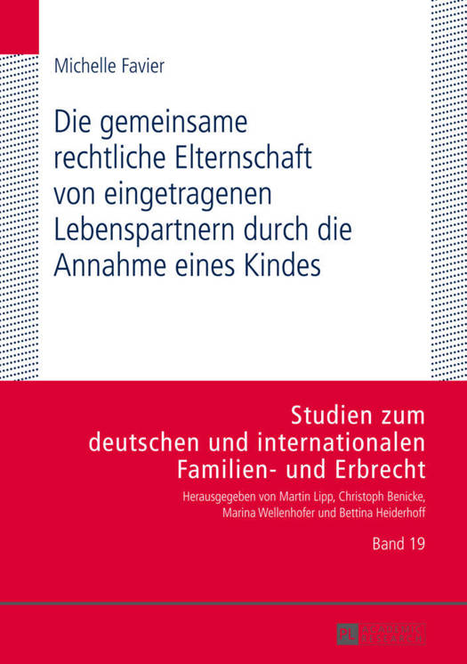 Ob bzw. wie können eingetragene Lebenspartner die gemeinsame rechtliche Elternschaft für ein Kind übernehmen? In dieser Arbeit setzt sich die Autorin zum einen mit der Sukzessivadoption, also der Zweitannahme eines zuvor vom Partner angenommenen Kindes, und zum anderen mit der gemeinschaftlichen Adoption auseinander. Sowohl die sukzessive als auch die gemeinschaftliche Adoption werden dabei unter zivilrechtlichen wie auch verfassungsrechtlichen Aspekten untersucht. Die Autorin kommt zu dem Ergebnis, dass auch eingetragenen Lebenspartnern die Möglichkeit der sukzessiven und gemeinschaftlichen Adoption eröffnet werden muss. Am Ende der Arbeit unterbreitet die Autorin eine dementsprechende Handlungsempfehlung für den Gesetzgeber.