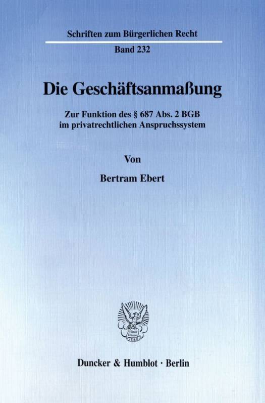Der Autor untersucht Tatbestandsmerkmale und Rechtsfolgen der Vorschrift über die Geschäftsanmaßung ( 687 II BGB) und deren Bedeutung im zivilrechtlichen Anspruchssystem.