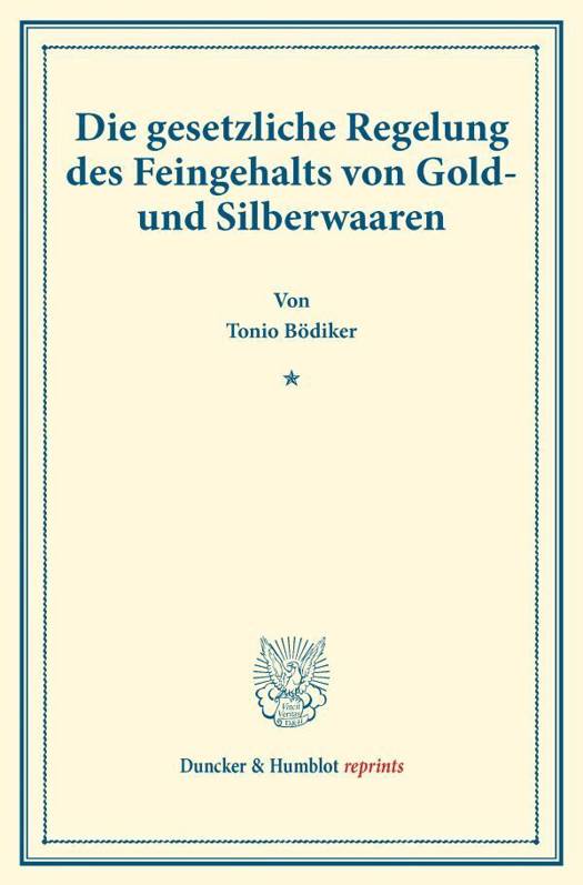 Die Gesetzliche Regelung Des Feingehalts Von Gold- Und Silberwaaren