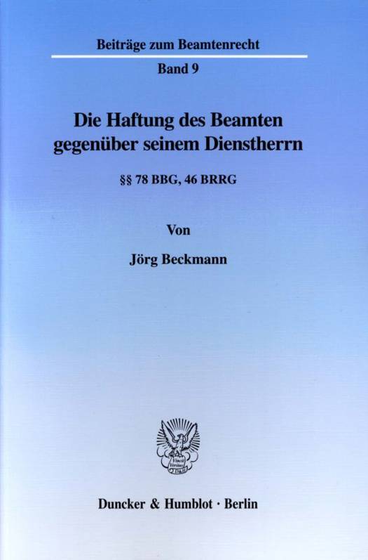 Der Autor widmet sich der Haftung des Beamten gegenüber seinem Dienstherrn auf Ersatz der von dem Beamten verursachten Vermögensschäden. Hierzu stellt der Verfasser zunächst die bisherige Entwicklung dieses mittlerweile über 200 Jahre alten Instituts des Beamtenrechts eingehend dar und untersucht dessen Verhältnis zum Disziplinarrecht ebenso wie dessen verfassungsrechtliche Grundlagen. Anschließend wendet er sich der heutigen Rechtslage zu und arbeitet heraus, daß sich durch die seit 1993 in Bund und Ländern erfolgte Beschränkung der Beamtenhaftung auf grob fahrlässige Pflichtverletzungen die früheren Probleme dieser Materie keineswegs erledigt haben, sondern zahlreiche Fragen weiterhin unbeantwortet sind. Diesen geht der Verfasser anhand einer umfassenden Analyse des Meinungsspektrums aus Literatur und Rechtsprechung nach und unterbreitet im Anschluß daran anhand der juristischen Auslegungsmethode jeweils eigene Lösungsvorschläge.