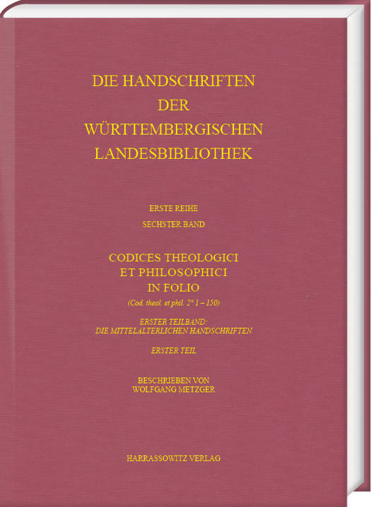 Die Handschriftenbestande der ehemaligen Herzoglichen, spater Koniglichen Offentlichen Bibliothek in Stuttgart, einer der Vorgangerinstitutionen der heutigen Wurttembergischen Landesbibliothek, sind nach Fachgruppen geordnet. Einen grossen Teil von insgesamt 270 Signaturen nehmen die im Mittelalter entstandenen theologischen und philosophischen Handschriften im Folioformat ein. Im ersten Katalogband zu diesem Teilbestand werden 108 Signaturen in 113 Banden erstmals nach neuesten Standards wissenschaftlich tiefenerschlossen. Die meisten der beschriebenen Texte entstanden im 15. Jahrhundert in klosterlichem Umfeld und wurden in lateinischer Sprache verfasst. Einige Schriftzeugnisse reichen jedoch zuruck bis ins fruhe und hohe Mittelalter. Deutschsprachige Texte nehmen einen vergleichsweise kleinen Anteil ein. Inhaltlich wird ein breites geisteswissenschaftliches Spektrum von den Schriften der Kirchenvater uber Zeugnisse der hochmittelalterlichen Klosterreform sowie der Erneuerungsbewegungen des spaten Mittelalters bis hin zu humanistisch bzw. reformatorisch gepragten Texten dargeboten. Der Katalogband bietet somit einen wichtigen Beitrag zur Erforschung der wurttembergischen Geistesgeschichte des Mittelalters und der Fruhen Neuzeit.