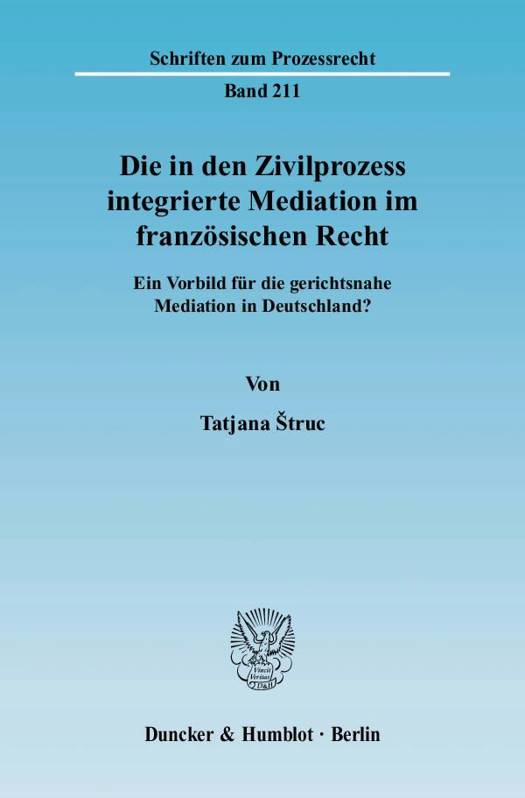 Mediation hat sich zu einem regelrechten Trend entwickelt. Sogar nach dem Schritt vor Gericht versuchen einige Parteien, den Konflikt im Wege der Mediation zu lösen. Mittlerweile wurde diese Möglichkeit - wenn auch zurückhaltend - in der ZPO normiert. Der französische Gesetzgeber hat bereits vor gut zehn Jahren weitreichendere Regelungen zur médiation judiciaire (Gerichtsmediation) im Gesetz verankert.Ausgehend vom französischen Recht untersucht Tatjana Struc dieses Verfahren, wobei sie immer wieder den rechtsvergleichenden Blick nach Deutschland schweifen lässt. Dabei greift sie besondere Fragenkomplexe heraus, anhand derer sie Vorzüge und Bedeutung, aber auch die Probleme verfahrensintegrierter Mediation aufzeigt. Abschließend kommt sie zu dem Ergebnis, dass eine gesetzliche Regelung der Leitlinien der integrierten Mediation auch im deutschen Recht wünschenswert ist. Dem Verfahren müssen jedoch die nötigen Freiräume belassen werden, damit es sich in der Praxis entwickeln kann. Die französischen Vorschriften können hierbei als Vorbild dienen.