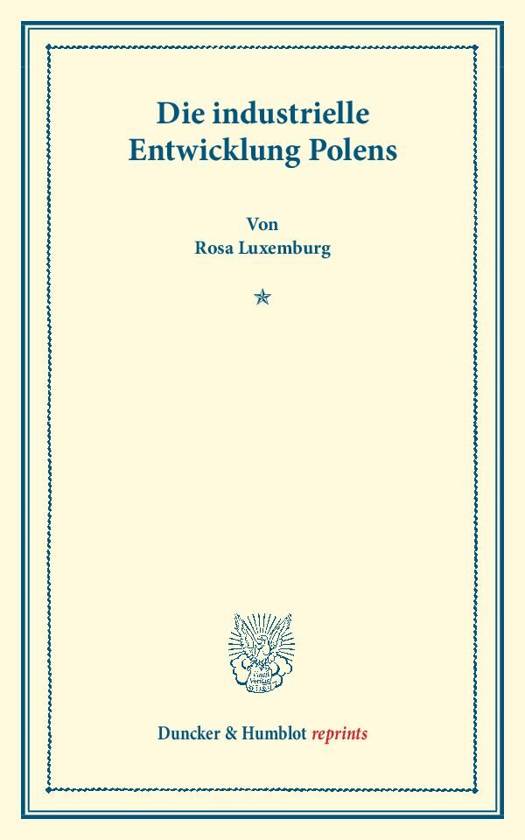 Mit der Arbeit "Die industrielle Entwicklung Polens" erwarb Rosa Luxemburg magna cum laude den akademischen Grad eines Dr. iuris publici et rerum cameralium. Es ist die einzige ihrer zahlreichen Schriften, die nicht die Emanzipation der Arbeiterklasse zum Gegenstand hat. Im ersten Teil der Arbeit gibt Luxemburg die Geschichte der industriellen Entwicklung Polens seit 1820 wieder und beschreibt den gegenwärtigen Stand, während sie im zweiten Teil die ökonomische Politik Russlands in Polen untersucht. Doch schon in diesem Frühwerk klingen marxistische Töne an. So ahnt sie die russische Oktoberrevolution voraus, wenn sie im Schlusswort schreibt: "Ferner bewegt sich aber der kapitalistische Prozeß mit unaufhaltsamer Eile demjenigen Moment entgegen, wo die Entwicklung der Produktivkräfte auch im russischen Reiche mit der Herrschaft des Kapitals unverträglich und wo an Stelle der privaten Warenwirtschaft eine neue sociale Ordnung auf der Basis einer planmäßigen genossenschaftlichen Produktion treten wird." (S. 92)