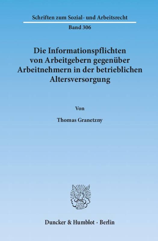 Derzeit wird von den Arbeitnehmern ein höheres Maß an Eigenverantwortlichkeit in Fragen der Altersversorgung gefordert. Damit Arbeitnehmer in Zeiten wachsender Ausdifferenzierung und Komplexität von Systemen der betrieblichen Altersversorgung sinnvoll agieren können, ist es notwendig, ihnen eine informationelle Basis für ihre Entscheidungen bereit zu stellen. Inwieweit Arbeitgeber hierbei in die Pflicht genommen werden können, ist Gegenstand der Arbeit.