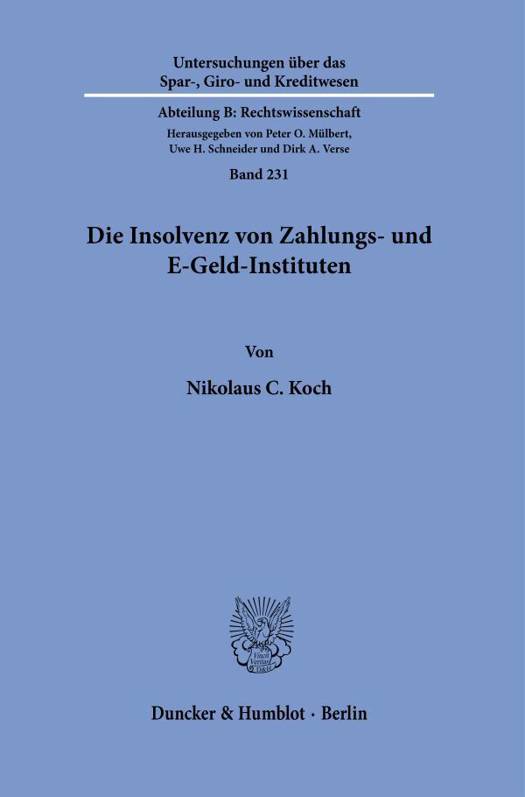 Bargeldlose Zahlungen erfreuen sich in Deutschland einer stetig wachsenden Beliebtheit. Für die Durchführung bargeldloser Zahlungen bedarf es der Einschaltung von Zahlungsdienstleistern. Hierzu gehören neben Kreditinstituten auch Zahlungs- und E-Geld-Institute. Im Gegensatz zu Kreditinstituten unterliegen diese Institute nicht der Einlagensicherung, stattdessen bestehen eigene Sicherungsvorschriften mit verschiedenen Sicherungsmethoden, welche die Kundengelder in der Insolvenz schützen sollen. Ausgehend von einer Zuordnung der Insolvenzrisiken bei den einzelnen Zahlungsdiensten nimmt es sich die Arbeit zur Aufgabe, die Auswirkungen der Insolvenz eines Zahlungs- oder E-Geld-Instituts detailliert herauszuarbeiten. Besonderer Fokus liegt hierbei auf dem Schutz der Kundengelder bei den einzelnen Sicherungsmethoden. Auf Grundlage eines rechtsvergleichenden Blicks nach Großbritannien wird ein Vorschlag de lege ferenda für die Bewältigung künftiger Institutsinsolvenzen entwickelt.