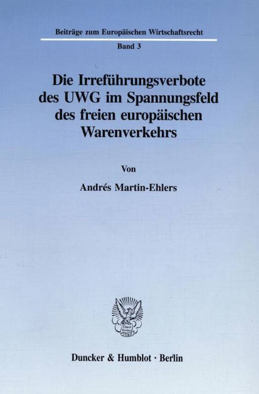 Der Band »Die Irreführungsverbote des UWG im Spannungsfeld des freien europäischen Warenverkehrs« greift ein aktuelles Thema auf. Die Verschränkung der