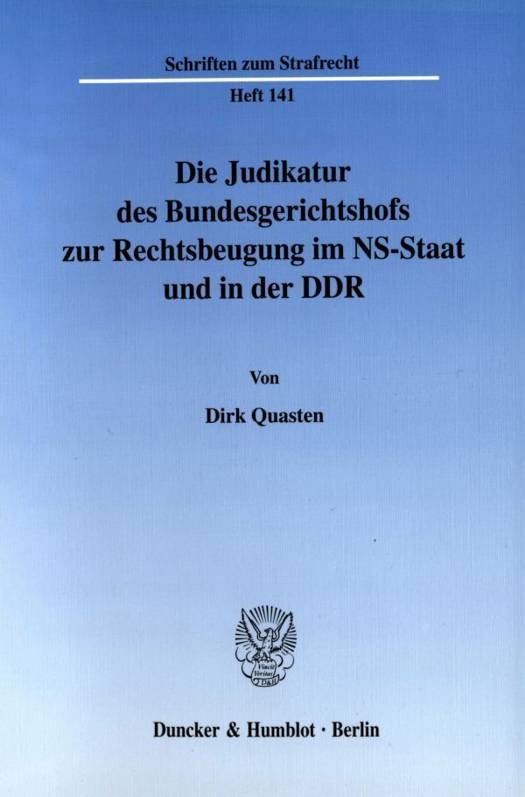 Der Tatbestand der Rechtsbeugung hat in der jüngsten deutschen (Rechts-)Geschichte jeweils nach einem radikalen politischen Wandel Beachtung gefunden: nach dem Zusammenbruch der NS-Diktatur sowie am Ende der DDR. Dirk Quasten vergleicht die höchstrichterliche Handhabung des Rechtsbeugungsstraftatbestandes an diesen beiden Zäsuren.