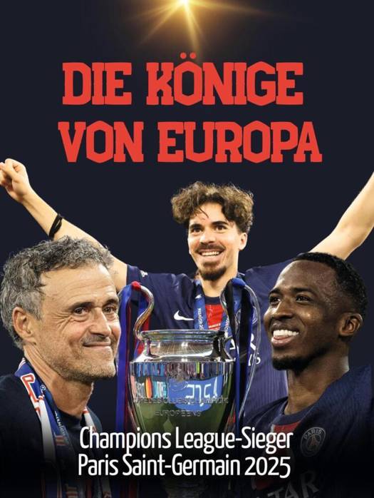 Wer hat den französischen Fußball revolutioniert und sich zum Herrscher Europas aufgeschwungen? "Die Könige von Europa: Champions League-Sieger Paris Saint-Germain 2025" nimmt Sie mit auf eine packende Reise durch die Geschichte von Paris Saint-Germain - dem Klub, der mit spektakulären Transfers, legendären Spielen und einer atemberaubenden Champions League-Saison 2025 alle Fans ins Staunen versetzt.Von den bescheidenen Anfängen im Pariser Parc des Princes bis zu den glanzvollen Nächten in der Champions League: Dieses Buch beleuchtet die Highlights in der Geschichte von PSG in fesselnden Texten und großformatigen Bildern. Erleben Sie die größten Momente, die herausragendsten Spieler wie Zlatan Ibrahimovic, Neymar und Kylian Mbappé, die dramatischen Triumphe und bitteren Niederlagen. Die Entwicklung vom Lokalverein zum internationalen Superstar-Team wird ebenso beleuchtet wie die Persönlichkeiten, die den Verein geprägt haben - auf und neben dem Platz. Sie finden einen spannenden Rückblick auf die diesjährige Saison, die besten Spieler, beeindruckendsten Momente und natürlich den atemberaubenden 5:0-Sieg gegen Inter Mailand im Finale der Champions League 2024/2025.Mit seinen großformatigen Fotos, die Emotionen und Atmosphäre einfangen, ist dieses Buch das perfekte Geschenk für alle Fans von Paris Saint-Germain - und für alle, die die diesjährige Champions-League-Saison noch ein wenig verlängern möchten.Das erwartet Sie beim Kauf dieses Buches:- Spannender Rückblick auf die bewegendsten Momente der Vereinsgeschichte von PSG- Hintergrundgeschichten zu legendären Spielen und Erfolgen- Großformatige, hochwertige Fotos aus allen Epochen- Aktuelles rund um die diesjährige Champions League-Saison und den Pokalsieg 2025- Ideales Geschenk für Fußballfans und Paris SG-Liebhaber