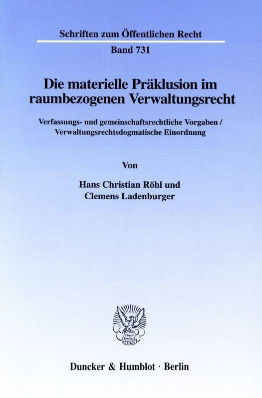 Die materielle Präklusion wird mit ihrer Ausdehnung auf das Planfeststellungsrecht, z. T. sogar auf das Baugenehmigungsverfahren, zunehmend zum Standardinstrument des Raumverwaltungsrechts. Dies veranlaßt zu einer vertieften Untersuchung ihrer dogmatischen Grundlagen sowie verfassungs- und gemeinschaftsrechtlichen Vorgaben.