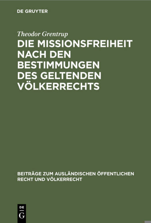 Die Missionsfreiheit Nach Den Bestimmungen Des Geltenden Völkerrechts