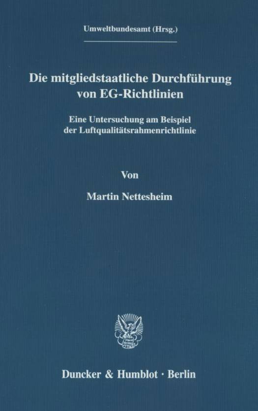 Es ist das Anliegen dieser rechtsdogmatischen Studie, sich dieser Aufgabe zu stellen. Als exemplarisches Beispiel sollen dabei Bestimmungen der Luftreinhalterahmenrichtlinie dienen. Untersucht werden soll der Umsetzungsbedarf, der sich in der ersten Umsetzungsphase dieser Richtlinie ergibt.
