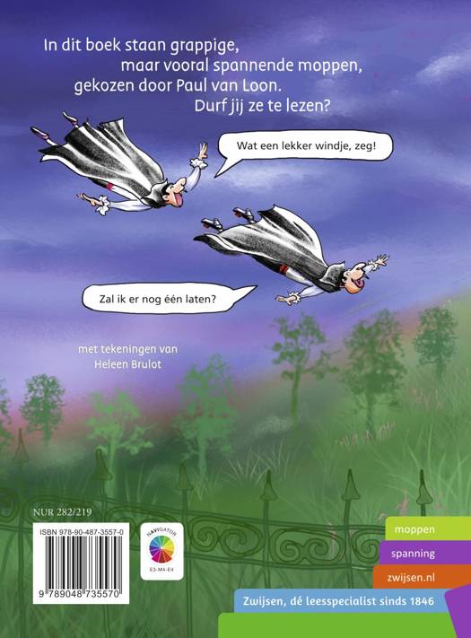 Die mop is top! Moppenboek van Paul van Loon met griezelige, spannende moppen en raadsels. Hoe maakt een skelet de deur open? Met zijn sleutelbeen. Het boek staat vol met grappige en spannende moppen, gekozen door Paul van Loon. Durf jij het te lezen?