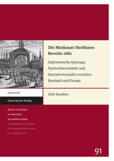 Am Beispiel des Aufstands der zarischen Infanterietruppen – der Strelitzen – in Moskau im Jahr 1682 demonstriert Gleb Kazakov, wie Russland im letzten Viertel des 17. Jahrhunderts einen festen Platz auf dem europäischen Nachrichtenmarkt einnahm. Er beschreibt, wie die politische Krise im Zarenreich im Jahr 1682 sowohl in russischer als auch in europäischer Diplomatie, Publizistik und politischer Theorie gedeutet und instrumentalisiert wurde. Kazakov eröffnet durch die Untersuchung der Berichterstattung über die Strelitzen-Revolte auch neue Perspektiven auf das Funktionieren des frühneuzeitlichen Nachrichtenmarkts sowie auf die Wechselwirkung zwischen Netzwerken diplomatischer Korrespondenz und gedruckten Medien des 17. Jahrhunderts.
