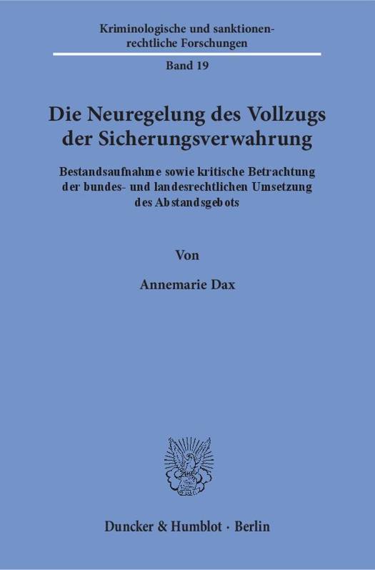 Ungeachtet der wissenschaftlichen Kritik baute der Gesetzgeber das Rechtsinstitut der Sicherungsverwahrung seit Beginn des 20. Jahrhunderts aus. Dem haben die Urteile des EGMR vom 17.12.2009 und des BVerfG vom 4.5.2011 ein Ende bereitet. Während der EGMR die Sicherungsverwahrung vorwiegend wegen der tatsächlichen Situation im Vollzug als Strafe i.S.d. EMRK einstufte, erklärte das BVerfG die Sicherungsverwahrung für verfassungswidrig. Grund dafür war v.a., dass der Vollzug dem Abstandsgebot nicht genügte. Die Dissertation beleuchtet die wegen der Entscheidungen notwendig gewordenen legislativen Aktivitäten auf Bundes- und Landesebene sowie die rechtlichen und tatsächlichen Entwicklungen des Sicherungsverwahrungsvollzugs. Gleichzeitig wird das Abstandsgebot auf einen kritischen Prüfstand gestellt. Die Autorin kommt zu dem Ergebnis, dass lediglich von einer geringfügigen Verbesserung der gesetzlichen und tatsächlichen Lage des Sicherungsverwahrungsvollzugs gesprochen werden kann.