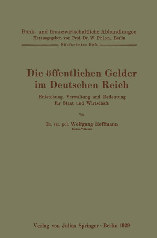 Entstehung, Verwaltung Und Bedeutung Für Staat Und Wirtschaft Fünfzehntes Heft