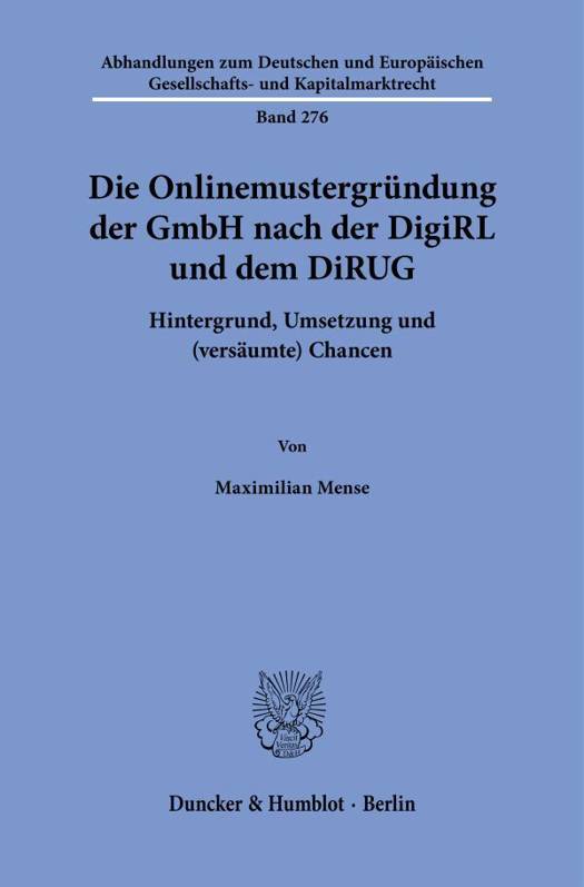 English summary: The Online Template Formation of LLC's Following the Digitalisation Directive and the DiRUG. Background, Implementation and (Missed) Opportunities Despite the requirements of the Digital. Directive and the following reform, the online template formation of the German GmbH remains disregarded. The implementation laws fell short of the EU requirements, particularly with regard to the once-only principle of the SDG Regulation. The strategy for a digital single market was not sufficiently addressed. In many cases, easy improvements would be possible and the vision of an online template formation without a notary for simple cases is feasible. German description: Infolge der DigiRL musste in Deutschland eine Onlinegrundung fur GmbHs eingefuhrt werden, die auch musterbasiert erfolgen konnen muss. Dennoch fristet die Onlinemustergrundung in Deutschland ein Schattendasein. Die Vorgaben hinsichtlich der Onlinemustergrundung wurden teilweise verkannt und durch die Umsetzungsgesetze DiRUG und DiREG, nicht erfullt. Bei der Umsetzung wurde die Strategie fur einen digitalen Binnenmarkt kaum berucksichtigt. Den kontextuellen Anforderungen, die sich insbesondere aus der SDG-VO mit dem dort verankerten Once-Only-Prinzip ergeben, wird die deutsche Umsetzung bislang nicht gerecht. Das Single-Digital-Gateway besitzt uberragende Bedeutung fur den digitalen Binnenmarkt, was sich auch auf das Gesellschaftsrecht auswirkt. Eine nutzerfreundliche Onlinegrundung steht unter andauerndem Reformdruck, was gut ist. So waren schon jetzt diverse Verbesserungen mit geringem Aufwand moglich und bei Einbindung der technischen Moglichkeiten, in einfach gelagerten Fallen gar eine Onlinemustergrundung ohne Beteiligung eines Notars moglich.