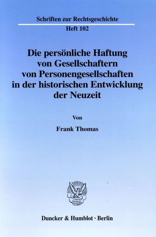 Gegenstand der Arbeit ist die in Deutschland nachweisbare Entwicklung der persönlichen Haftung von Gesellschaftern für rechtsgeschäftliche Verbindlichkeiten in der Zeit vom frühen Mittelalter bis zu den Kodifikationen der Aufklärung.
