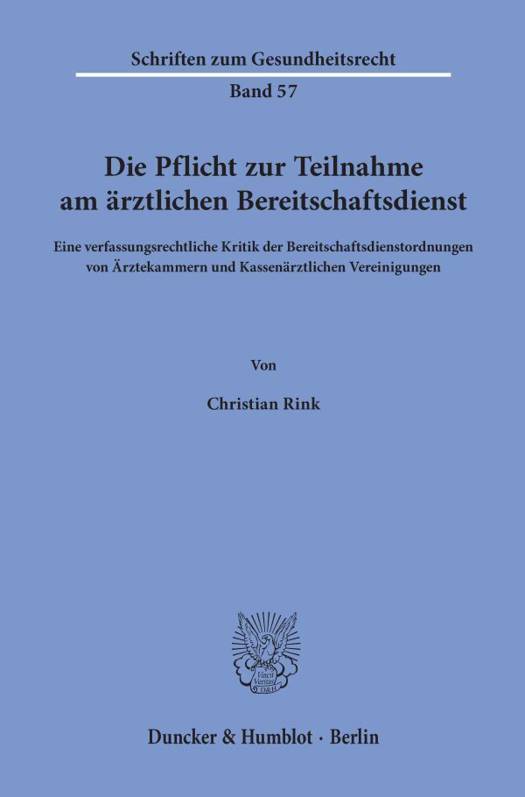 Die Teilnahmepflicht der Arzte am Bereitschaftsdienst findet trotz ihrer Bedeutung fur das deutsche Gesundheitssystem in der Rechtswissenschaft bislang kaum Beachtung. Dabei zeigen bereits unzahlige diesbezuglich ergangene sozial- und verwaltungsgerichtliche Entscheidungen, dass sich auch aus rechtlicher Sicht eine genauere Betrachtung lohnt. Daher unterzieht die Arbeit die Teilnahmepflicht einer detaillierten verfassungsrechtlichen Analyse. Hierbei wird auch deren einfachgesetzliche Regelung durch die Arztekammern und Kassenarztlichen Vereinigungen untersucht. Dabei lasst sich feststellen, dass eine Teilnahmepflicht zwar per se verfassungsrechtlich zulassig ist, jedoch in ihrer momentanen Ausgestaltung teils erheblichen Bedenken begegnet. Daher werden abschlieaend Vorschlage fur die Regelung der Teilnahmepflicht durch die Arztekammern und Kassenarztlichen Vereinigungen unterbreitet, welche sowohl ihre rechtliche Zulassigkeit als auch ihre Praktikabilitat gewahrleisten sollen.