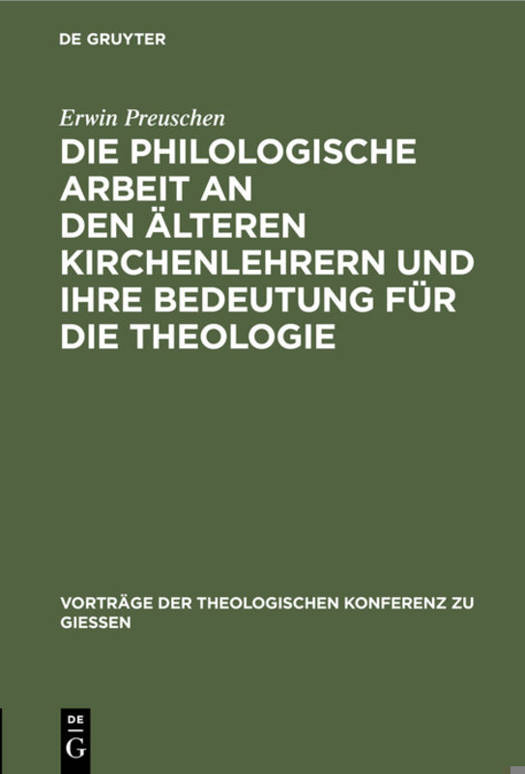 Die Philologische Arbeit an Den Älteren Kirchenlehrern Und Ihre Bedeutung Für Die Theologie