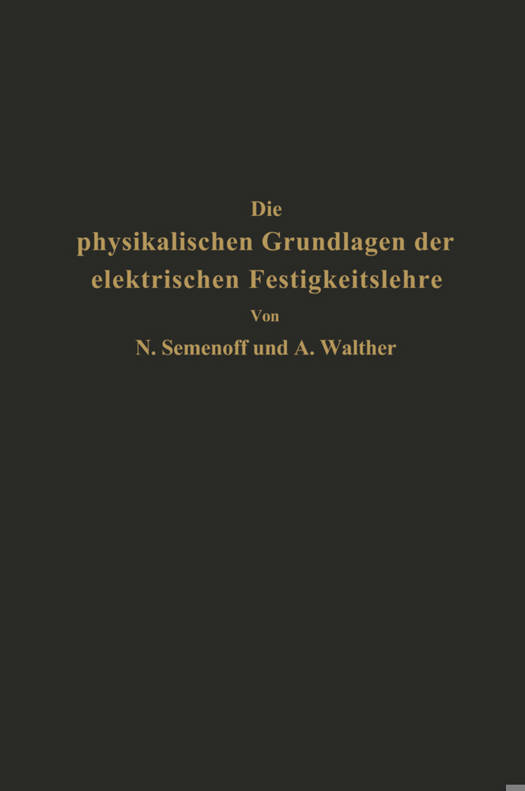 Die Physikalischen Grundlagen Der Elektrischen Festigkeitslehre