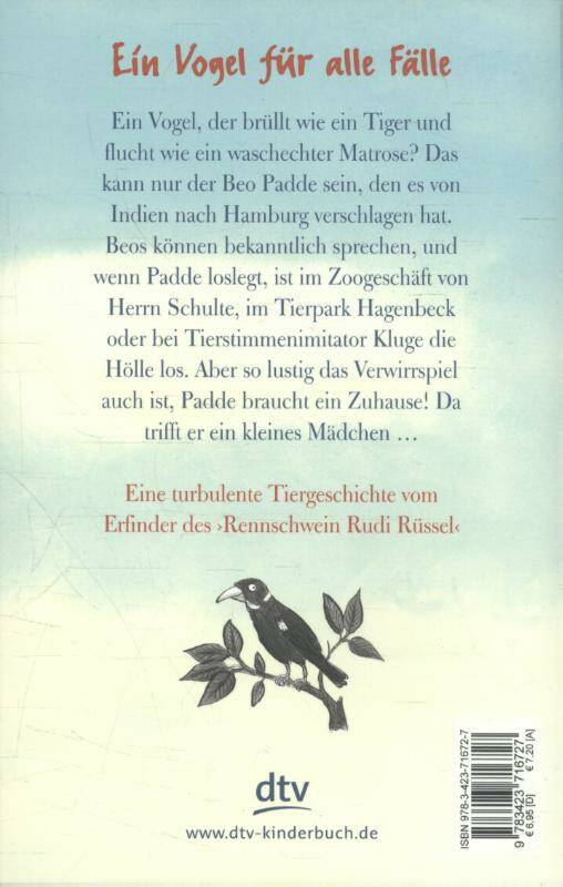 Ein Vogel, der brüllt wie ein Tiger und flucht wie ein waschechter Matrose? Das kann nur der Beo Padde sein, den es von Indien nach Hamburg verschlagen hat. Wenn Padde loslegt, ist im Zoogeschäft von Herrn Schulte, im Tierpark Hagenbeck oder beim Tierstimmenimitator Kluge die Hölle los. Aber so lustig das Verwirrspiel auch ist, Padde braucht ein Zuhause! Da trifft er auf ein kleines Mädchen . . .