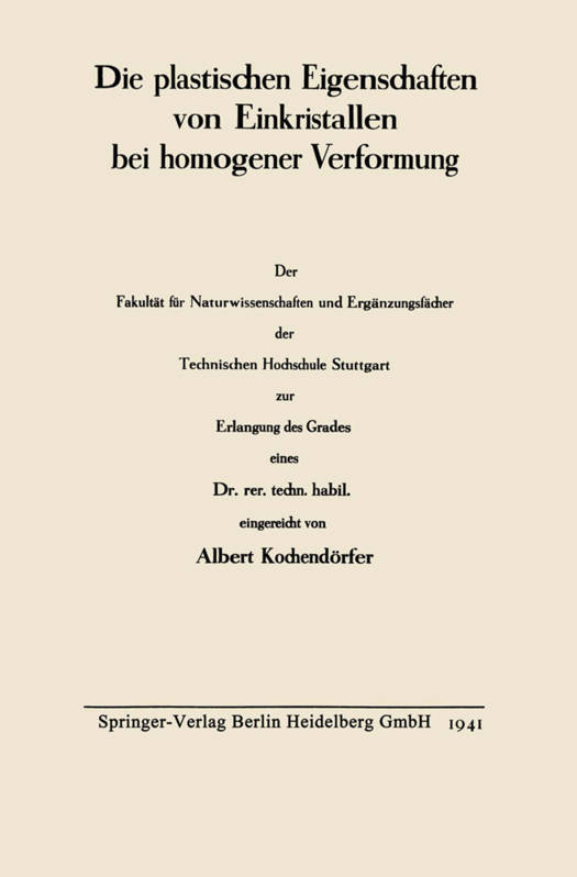 Die Plastischen Eigenschaften Von Einkristallen Bei Homogener Verformung