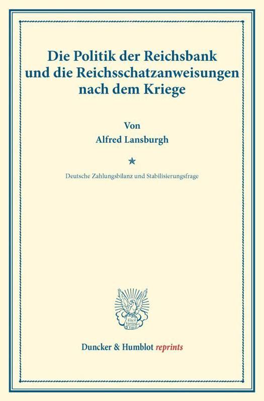 Die Politik Der Reichsbank Und Die Reichsschatzanweisungen Nach Dem Kriege