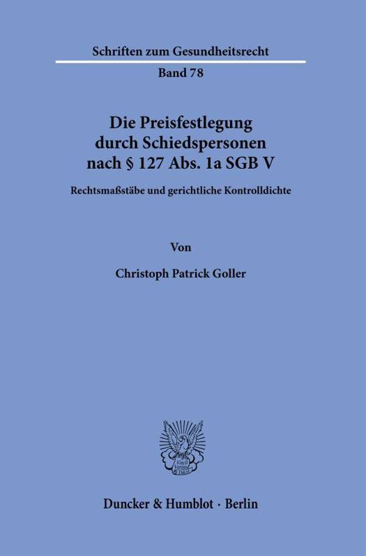 English summary: Price Determination by Arbitrators under 127(1a) SGB V. Legal Standards and the Scope of Judicial Review Goller presents a comprehensive framework for price determination standards for arbitrators under 127(1a) SGB V and their judicial review. He illustrates how substantive legal principles shape pricing decisions and their scrutiny. The thesis provides a methodical approach to identifying decision-making and review standards in social law arbitration. German description: Christoph Goller prasentiert eine umfassende Dogmatik zu den Preisbemessungsmassstaben fur Schiedspersonen in der GKV-Hilfsmittelversorgung nach 127 Abs. 1a SGB V und zur Dichte fachgerichtlicher Kontrolle solcher Entscheidungen. Er beleuchtet, wie Parlamentsgesetze und die verfassungsmassige Rechtsordnung die Preisfestsetzung und deren gerichtliche Uberprufung pragen. Die Untersuchung bietet eine methodengerechte Herangehensweise fur die Anwendung relevanter Entscheidungsmassstabe in sozialrechtlichen Schiedsverfahren im Allgemeinen und liefert Anknupfungspunkte fur eine allgemeine Dogmatik zur gerichtlichen Kontrolle solcher Entscheidungen. Die Arbeit vereint wissenschaftliche Tiefe mit praktischer Relevanz, indem sie Schiedspersonen, Parteien, Rechtsanwalten und Gerichten mehr Rechtssicherheit in Fragen der Vergutungsbemessung und gerichtlicher Kontrolle verschafft. Sie ist fur alle von Interesse, die sich mit sozialrechtlichem Schiedswesen und Leistungserbringervergutung befassen.