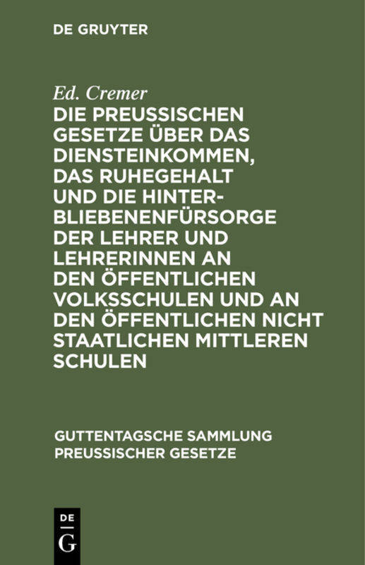 Die Preußischen Gesetze Über Das Diensteinkommen, Das Ruhegehalt Und Die Hinterbliebenenfürsorge Der Lehrer Und Lehrerinnen an Den Öffentlichen Volksschulen Und an Den Öffentlichen Nicht Staatlichen Mittleren Schulen