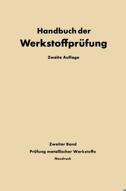 Das Handbuch der Werkstoffprüfung umfaßte in der ersten Auflage 5 Bände, von denen Band I die Prüfmaschinen und Sondereinrichtungen sowie die Meß- verfahren und -einrichtungen, Band II die Prüfung der metallischen Werkstoffe, Band III die Prüfung der nichtmetallischen Baustoffe, Band IV die Papier-und Zellstoffprüfung und der voraussichtlich erstmalig 1956 erscheinende Band V die Prüfung der Textilien behandeln. Die erste Auflage hatte allgemeine Anerkennung gefunden. Nach dem Kriege entstand daher der Wunsch, dieses Standardwerk baldmöglichst in einer zweiten Auflage erscheinen zu lassen, welche die deutsche und ausländische Entwicklung auf dem Gebiete des Materialprüfungswesens in den Kriegs-und Nachkriegszeiten berücksichtigt. Die nach dem Kriege auftretenden Schwierigkeiten haben aber das Erscheinen der Neuauflage zunächst verzögert. In den letzten drei Jahren konnten die Vorarbeiten dann so gefördert werden, daß, nachdem schon der IV. Band erschienen ist, nunmehr die Herausgabe des li. Bandes erfolgen kann, dem in Kürze der I. Band und im Jahre 1956 der III. Band folgen werden.