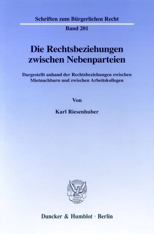 Welche zivilrechtlichen Beziehungen bestehen zwischen mehreren Vertragspartnern einer Person, den "Nebenparteien"? Mit dieser Frage befaßt sich die Arbeit anhand der Rechtsverhältnisse zwischen Mietnachbarn und zwischen Arbeitskollegen.
