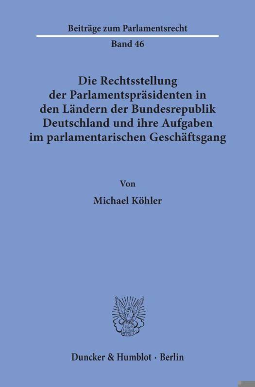Der Autor setzt die rechtliche Stellung der Parlamentspräsidenten in den 16 Ländern der Bundesrepublik Deutschland zueinander vergleichend in Beziehung mit der Maßgabe, Gemeinsamkeiten, Abweichungen und strukturelle Besonderheiten herauszuarbeiten und zu kommentieren. Dies gilt vor allem für die den Landtagspräsidenten durch Verfassung und Geschäftsordnung zugewiesenen klassischen Aufgaben, nämlich der Ausübung der Leitungs-, Ordnungs- und Polizeigewalt sowie des Hausrechts im Landtagsgebäude.