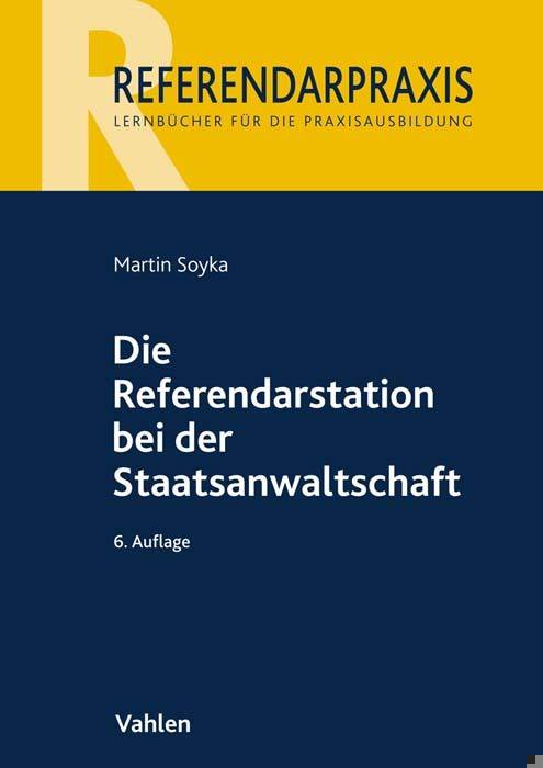 Aus dem Inhalt Für Absolventinnen und Absolventen des Ersten Juristischen Staatsexamens stellt der Beginn des Referendariats eine neue Herausforderung dar. Mit dem universitären Studium haben die Rechtskandidatinnen und -kandidaten ein theoretisches Wissen erworben, das es ab jetzt in die Praxis umzusetzen gilt. Dabei stellen Referendarinnen und Referendare erfahrungsgemäß bald fest, dass Theorie und Praxis sehr weit auseinander liegen können. Dieses Buch ist ein erster Leitfaden für die Arbeit bei der Staatsanwaltschaft. Es soll angehenden Referendarinnen und Referendaren dabei helfen, sich schnell in ihrer neuen Rolle zurechtzufinden. Besonderes Augenmerk wird auf die tatsächlichen Abläufe innerhalb der Behörde gerichtet, die den Umgang mit den Fällen bestimmen. Der Autor geht darüber hinaus auf die rechtlichen Erwägungen, die den jeweiligen Sachentscheidungen zugrunde liegen, ein. Die enthaltenen Mustertexte erleichtern der Referendarin bzw. dem Referendar die praktische Umsetzung. Zudem werden die Leserinnen und Leser mit dem Sitzungsdienst in Strafsachen vertraut gemacht. Der Autor Dr. Martin Soyka ist Oberstaatsanwalt in Kiel und nebenamtlicher Arbeitsgemeinschaftsleiter bei der Staatsanwaltschaft Kiel, dem Landgericht Kiel und dem Schleswig-Holsteinischen Oberlandesgericht.